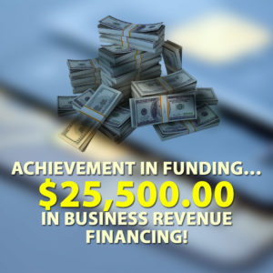 Achievement in funding… $25,500.00 in Business Revenue financing!