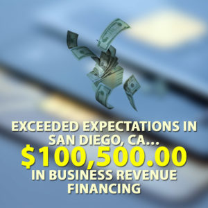 Exceeded expectations in San Diego, CA… $100,500.00 in Business Revenue Financing.