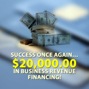 Success once again… $20,000.00 in Business Revenue financing!